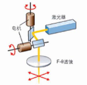 從激光器中輸出的光束,由安裝在高速精密電機(jī)上的兩個反射鏡控制,以實(shí)現(xiàn)光束的運(yùn)動打標(biāo)。每個反射鏡都沿著單一的軸線運(yùn)動。電機(jī)的運(yùn)動速度非???,并且慣性非常小,從而能夠?qū)崿F(xiàn)對目標(biāo)物體的快速打標(biāo)。經(jīng)過反射鏡引導(dǎo)的光束利用F-θ透鏡聚焦,焦點(diǎn)位于被標(biāo)記的平面上。當(dāng)該聚焦光束與被標(biāo)記物體相互作用時,物體就被“打上標(biāo)記”了。除了被打標(biāo)的位置,物體的其他表面仍然保持不變。